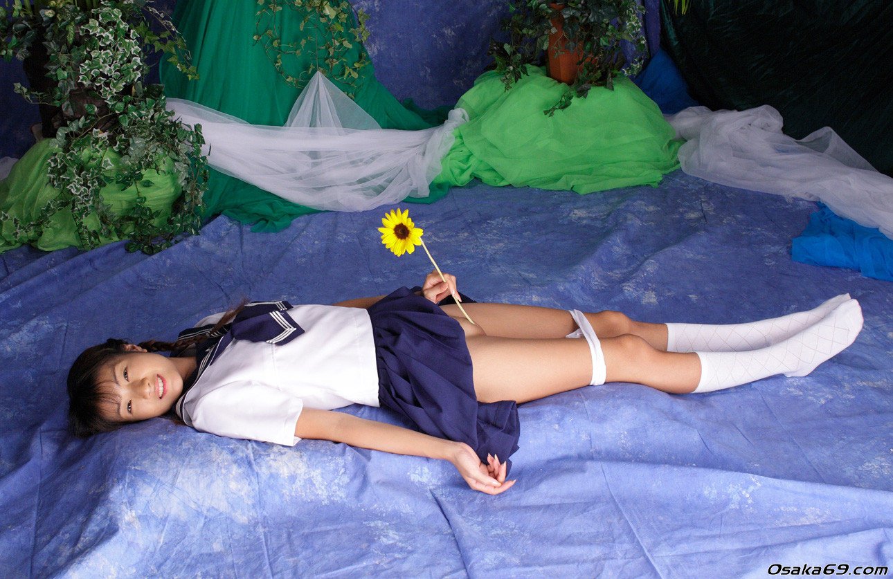 Japanese Schoolgirl Kyoko Mineshima (峰島今日子) Spreads her Shaved Pussy |